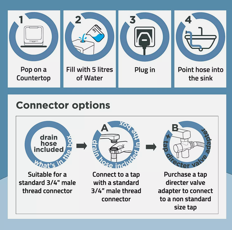 Cookology Mini Portable Dishwasher Table Top with Baby Care & Fruit Wash CMDW2SL