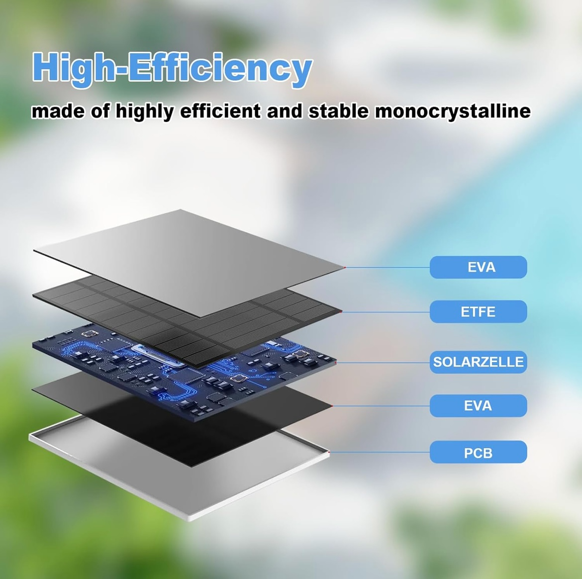 - High Efficiency: The solar panel charger is made of highly efficient and stable monocrystalline silicon material with a maximum power output of 5W, which is functionally more efficient and stable than ordinary solar panels.