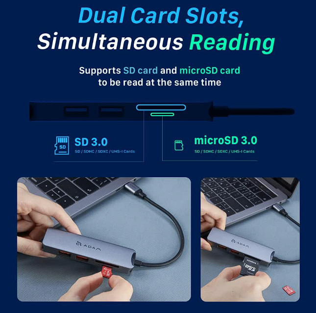 - DUAL CARD READERS CAN BE READ SIMULTANEOUSLY - When you have work to do and need the two SD & microSD cards to be read at the same time, well, this hub matches your need, and it can double your work efficiently.