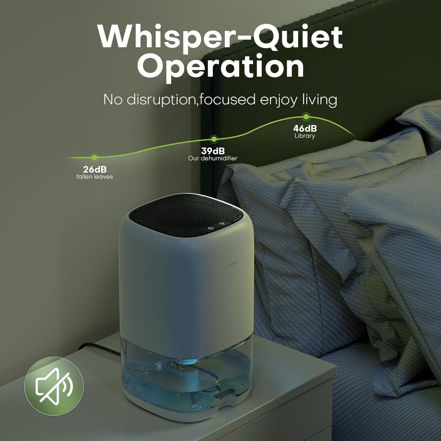- Ultra-Quiet&Low Energy Consumption: The dehumidifiers used Peltier technology, the operating sound is about 39 dB that's suit for sleeping, and the dehumidifier can run all day long without loud or annoying noises.