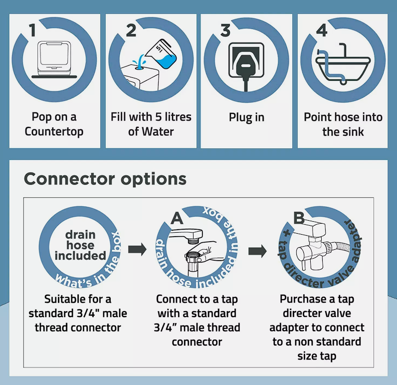 Cookology Mini Tabletop Dishwasher With 7 Wash Cycles - CMDW2BK